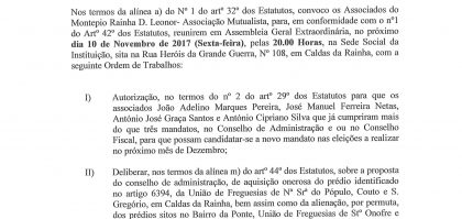 Convocam-se todos os Associados do Montepio Rainha D. Leonor para uma Assembleia Geral extraordinária. Mais informações, aqui. 16total visits,6visits today